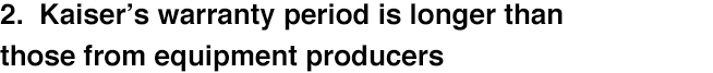 All these are longer than the warranty period from equipment producers.Kaiser’s unique long warranty period shows its responsibility towards all Kaiser customers