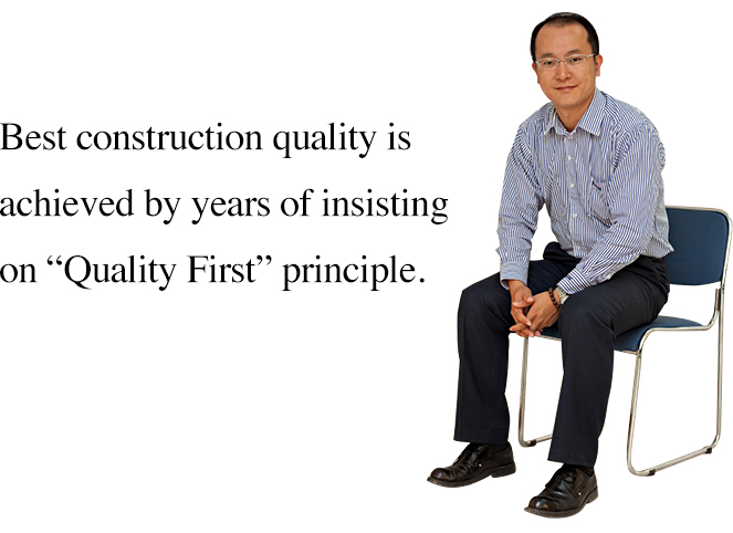 Every worker in Kaiser shall persist in 100% quality construction even in those invisible spots such as well aligned pipelines and seamless mortar interface. Foundation backfill with compaction at every 30mm etc. is always maintained.