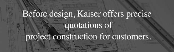 In order to prepare non-"fixed model" quotation, material quantity and material types must be precisely calculated. This process requires blueprint drawings. Unfortunately, during the quotation process, the design blueprint does not exist. Thus, Kaiser will design price quotation drawings during the blueprint stage. Based on the price quotation drawing, calculations on project costs can be made.
