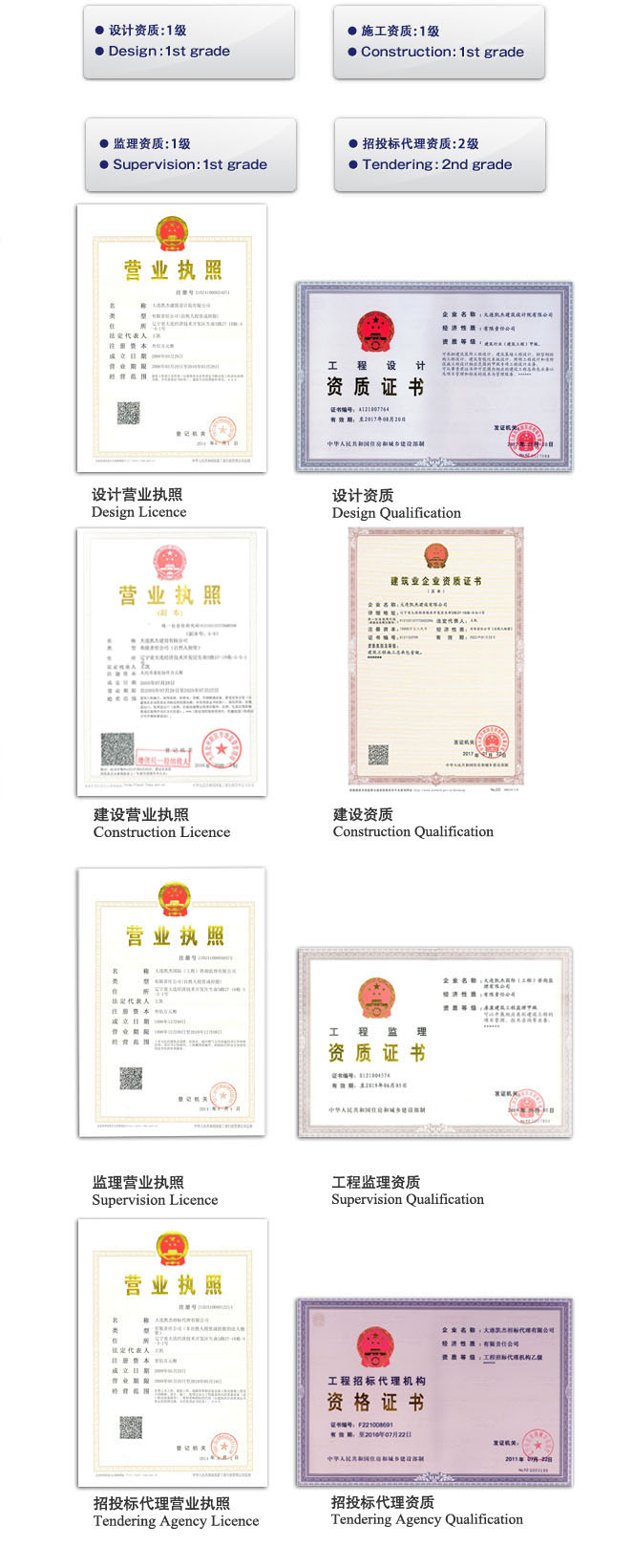 凱杰公司發(fā)揮中國當?shù)仄髽I(yè)的優(yōu)勢,擁有外資建筑企業(yè)很難單獨取得的建設(shè)工程資質(zhì)。 并且Kaiser引進了國際標準的【ISO9001】質(zhì)量保證體系,構(gòu)筑【Kaiser獨有的質(zhì)量管理體制】、達到【員工質(zhì)量意識提高】【業(yè)界動態(tài)把握】【產(chǎn)品和服務(wù)魅力提高】的目標。
