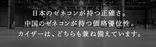 「中國(guó)の建設(shè)企業(yè)はコストは安いが、品質(zhì)が不安だ」という聲は、確かに日本、歐米のお客様からよく聞きます。しかし、私たちは、創(chuàng)立以來、日本の優(yōu)れた管理方式の導(dǎo)入による品質(zhì)確保と、中國(guó)獨(dú)資企業(yè)の強(qiáng)みである価格競(jìng)爭(zhēng)力を両立してきました。なぜなら、それがお客様が最も求めていることだからです。カイザーが選ばれる、その理由は、矛盾を當(dāng)然の使命としてお客様のために行っているからなのです。