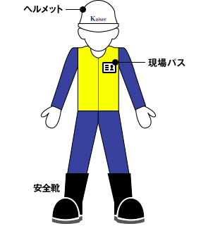 安全のための、現(xiàn)場での服裝規(guī)定。