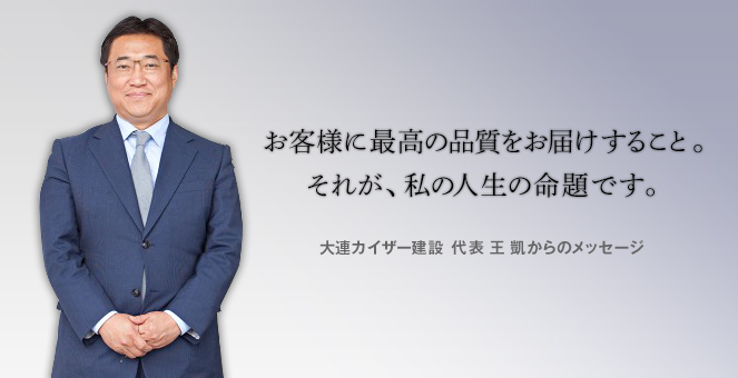 日本の施工品質(zhì)に感銘を受け、目標とした私は、1998年に大連カイザーを創(chuàng)立しました。